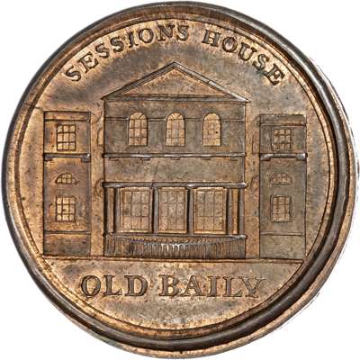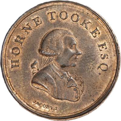 London - Holborn, Thomas Spence Halfpenny undated, Draped bust right of the democrat John Horne-Tooke, rev. Façade of the Old Bailey, edge, plain, 32.25mm/16.13gm. (DH 878). Well struck and large flan, good Extremely Fine with a lot of original mint lustre, scarce.