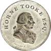 London - Holborn, Thomas Spence white-metal Halfpenny undated, Draped bust right of the democrat John Horne-Tooke, rev. façade of the Old Bailey, edge, plain, 31.75mm/9.32gm. (DH 878). Well struck, good Extremely Fine ‑ beginnings of toning on high points, lustrous fields making a handsome piece, rare in this off‑metal.