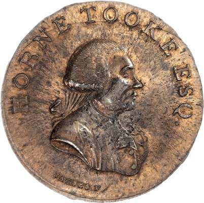 London - Holborn, Thomas Spence Halfpenny 1796, Draped bust right of the democrat John Horne-Tooke, rev. two boys on a turnstile, edge, plain, 29.25mm/9.85gm. (DH 879). Rev. weakly struck, otherwise good Extremely Fine with a lot of original mint lustre but slightly hazy, rare.