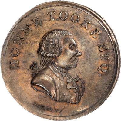 London - Holborn, Thomas Spence Halfpenny 1796, Draped bust right of the democrat John Horne-Tooke, rev. bust right of George III, edge, diagonally milled, 32mm/11.11gm. (DH 881). Well struck, good Extremely Fine with no small amount of original mint lustre, scarce.