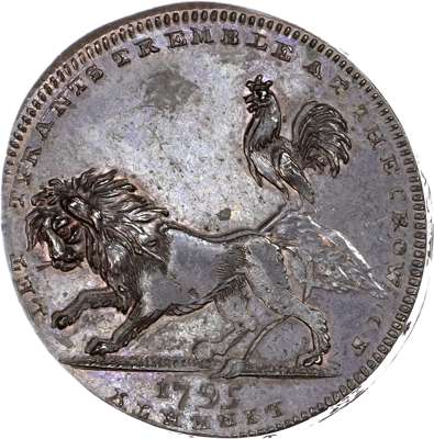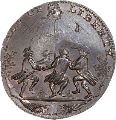 London - Holborn, Thomas Spence Halfpenny 1796, Four men dancing around a pole with a severed head on top, rev. Cock crowing over skulking lion edge, SPENCE DEALER x IN x COINS x LONDON x, 29mm/11.46gm. (DH 889). Both sides a little weakly struck, otherwise good Extremely Fine, darkly toned with underlying brilliance and trace of original lustre, rare. £150-200 Ex. ‘an old Surrey Col.’ via Mark Rasmussen Sep. 2016.