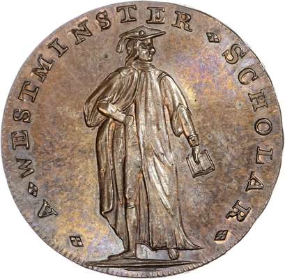 London - Holborn, Thomas Spence Halfpenny 1796, Two boys on a turnstile rev. A Westminster Scholar standing in gown looking right edge, plain, 29mm/9.75gm. (DH 898). Well struck and good Extremely Fine, toned with good iridescence and a trace of original lustre, scarce.
