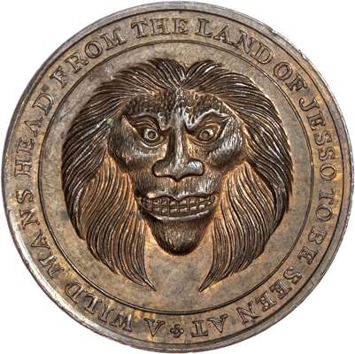 London - Old Cavendish St. Richard Summer (perfumer and dealer in curiosities) Halfpenny 1797, Head of a wildman from Jesso (North Japan), rev. RS cypher in a shell within 3 lines of legend, edge plain, 30.5mm/17.05gm. (DH 905 bis). Extremely Fine or better (bit of cabinet friction on very high raised areas of obv.), toned with trace of original lustre. Unrecorded as this appears to be an unpublished rev. die - something between DH 905 and 906. Unique ?