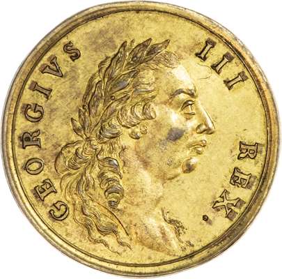 London, National Series, William Davis - Thanksgiving at St. Paul’s Halfpenny 1789, Laureate bust of George III right, rev. All-seeing eye over arms of the City of London, edge plain, 29.5mm/8.3gm. (DH 930). Another the same but gilded, 29.5mm/8.36gm. (DH 930). Both good Extremely Fine, first nicely toned + traces of lustre, second exhibiting a little cabinet friction on highest points. Gilt piece rare. [2]