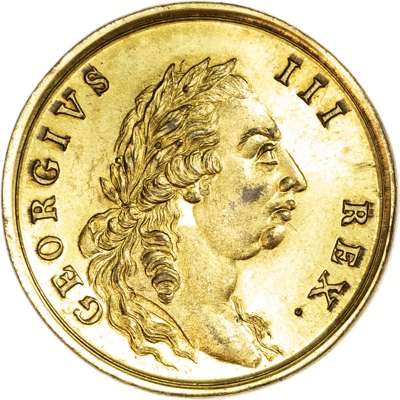London, National Series, William Davis - Thanksgiving at St. Paul’s Halfpenny 1789, Laureate bust of George III right, rev. 7-line legend re. health restored, edge plain, 29mm/7.48gm. (DH 932). Another the same but gilded, 29.5mm/7.76gm. (DH 932). Both good Extremely Fine, first nicely toned plus more than traces of lustre, second with beautiful reflective original gilding. Gilt piece rare. [2]