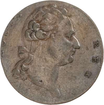 London, National Series, brockage Halfpenny (1790), Bust right of Louis XVI, rev. incuse image of obv., edge plain, 27mm/6.36gm. (DH.1003). About Extremely Fine for issue, toned, unique ?