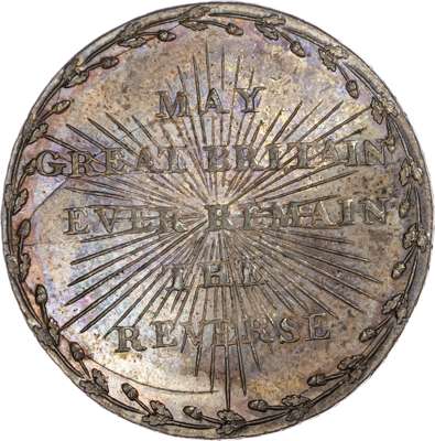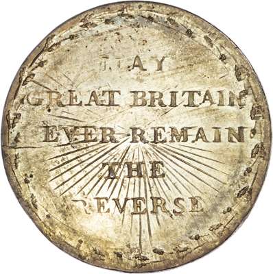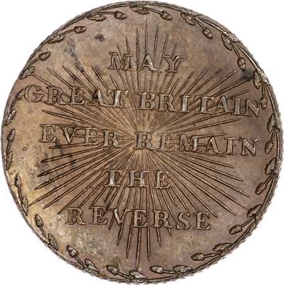 London, Political Series, William Mainwaring’s (button maker) satirical Map of France Halfpenny 1794, Map of France with honour underfoot, fire in all corners, the throne upside down, etc, rev. 5-line legend in oaken wreath, edge CURRENT EVERYWHERE, 28.5mm/9.38gm. (DH 1016). Another the same but edge engrailed, 29.25mm/9.95gm. (DH 1016d). Another but edge diagonally milled, 28.75mm/9.56gm. (DH 1016e). Another the same but silvered and edge plain, 30.25mm/12.73gm. (DH 1016f). All good Extremely Fine and toned, first a little weak, second proof‑like and iridescent, fourth with good reflection to silver toning, this last very rare in this off‑metal. [4]