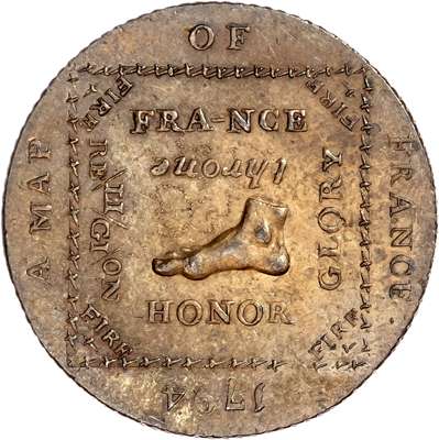London, Political Series, William Mainwaring’s (button maker) satirical Map of France Halfpenny 1794