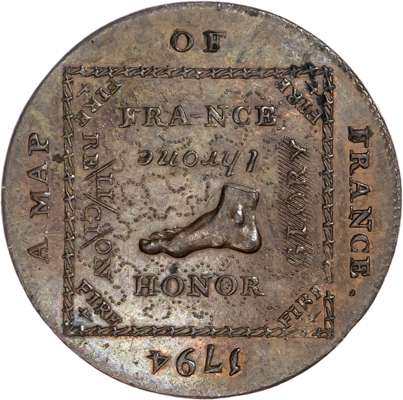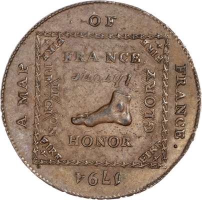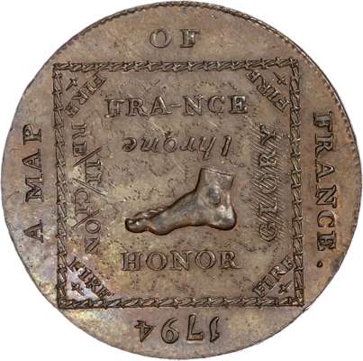 London, Political Series, Mainwaring’s satirical Map of France Halfpenny 1794