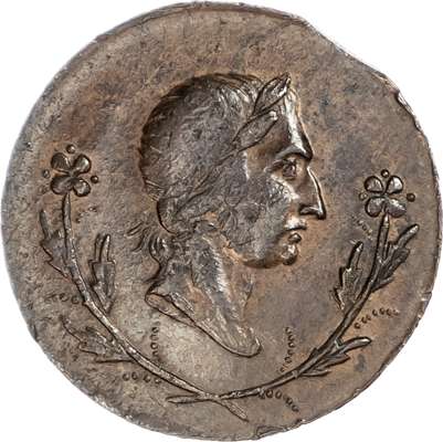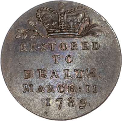 London, National Series, Farthing 1793, Laureate head right of Prince of Wales right (?), rev. Prince of Wales plumes in a shield in oaken wreath, edge plain, 21mm/3.8gm. (DH 1124). Another dated 1796, Laureate bust in flower wreath, rev. Prince of Wales Plumes in shield, 21.5mm/3.2gm. (DH 1168). Another dated 1789, Laureate head right of George III, rev. Crown over ‘RESTORED TO HEALTH’, edge plain, 21.5mm/2.94gm. (DH 1130). All Extremely Fine and all with a trace of lustre and all scarce. [3]