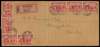 1d carmine pair, strip of three and two singles on registered envelope. Registered Bulawayo SCs MY 30 12. Vertical fold and some wear