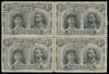 2d black and brownish grey-black block of four, Thick Ear plate, positions 44-50. The upper pair showing strong re-entering to the heads, giving a darker impression than the lower pair. Unmounted o.g., the lower left stamp with a light bend mentioned only for accuracy, a really fine and rare multiple. RSC I variant