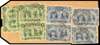 2½d dull blue (4) and ½d yellow-green (4, one on reverse) on full parcel tag, Shangani SCs