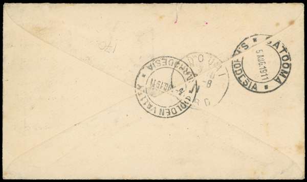 2½d ultramarine on 1d postal stationery envelope to Douai, Golden Valley DCs 5 AUG 1911