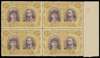 3d dull purple and ochre SG 134 block, positions 19-25, position 25 lines by King's cheek mint
