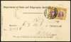 3d purple and yellow-ochre, Long Gash plate, tied to Telegram receipt form (paying the fee for the receipt, which was for a telegram costing £7/14/8). Vertical fold, still fine and very rare indeed. SG 135
