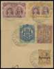 3d magenta and ochre, 6d chocolate and maroon, 1896 Arms 2s and 2s6d and 1909 1s on piece with Livingstone DCs of 22 NOV 1912. Piece patched in at left to square it off. Unusual. 3d SG 136, 6d RSC E