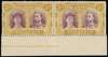 3d maroon and yellow-ochre, Hook plate, lower marginal pair with large part imprint, positions 48-9. Unmounted o.g. (folded between), with the vignettes in markedly different shades. SG 136a