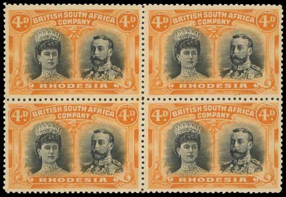 4d grey-black and orange RSC A block, positions 17-23 mint