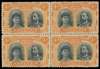 4d blue-black and yellowish orange block of four, No Gash plate, positions 16-22. O.g., all four stamps with hinge remainders, still fine and the only recorded mint multiple of this printing. RSC F