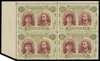 5d lake-brown and olive upper left corner block of four, No Gash plate. Position 1 dots over left side of tiara, and dot to right of King's head, position 2 without gash on Queen's ear. Upper selvedge reduced, otherwise fine unmounted o.g., a wonderful multiple. SG 143