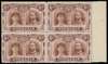 6d brown and purple marginal block of four, Thick Ear plate, positions 19-25. Hinged on the selvedge only (which is thinned), the stamps fine unmounted. Minor flaws; position 20 doubling of first four rayons, 24 King's forehead mark and 25 scratch across right scroll. SG 145