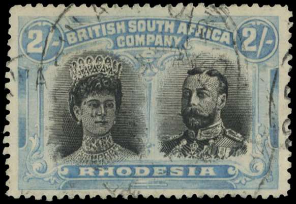 2s deep black and (bright) light blue, No Gash plate, position 36. Fine used with part Bulawayo cancel. RSC E