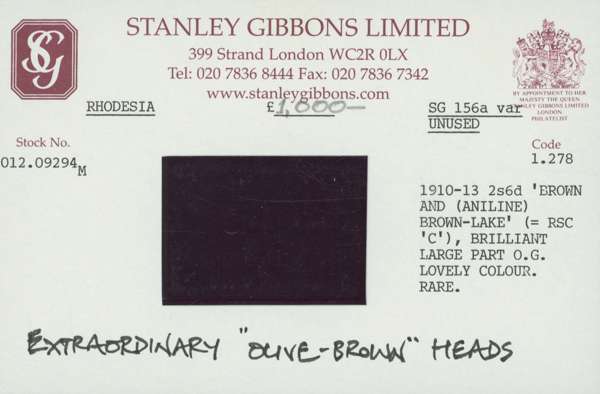 2s6d brown and (aniline) brown-lake, Mid Gash plate. Unpositioned example with distinctly olive-brown heads, large part o.g.; fine. RSC C