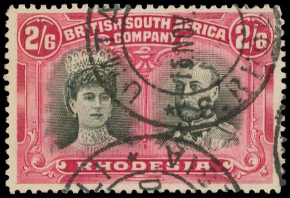 2s6d brownish black and rose, Long Gash plate. Used example in an unusual shade, part Umtali cds. Unlisted