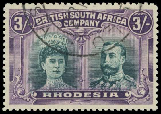 3s deep bluish green and deep reddish violet, Long Gash plate, fine used; CTO'd at Gwelo. A lovely stamp, rare. RSC B