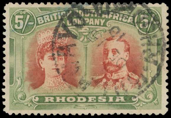 5s vermilion and deep green, Long Gash plate. Good used example with Bulawayo SC of DE 15 10; early date. SG 159