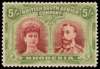 5s crimson and yellow-green SG 160a, position 25 lines by King's cheek mint