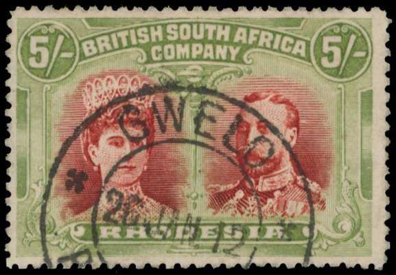 5s crimson and yellow-green, Long Gash plate. Fine used example with Gwelo cds 26 JAN 12, fine, scarce commercially used. Discreet Senf guarantee on reverse. SG 160a
