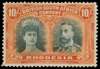 10s blue-green and orange SG 164, position 15 King's eyebrow line mint