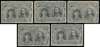 2d black and slate-grey Long Gash plate, SG 128, five mint examples with positions 22 (part o.g.), 23 (o.g.), 25 (lines by King's cheek, large part o.g.), 28 (large part o.g.) and 33 (large part o.g.)