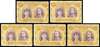 3d purple and yellow-ochre SG 135 small mint group with position 13 printer's mark at top left large part o.g., 15 King's eyebrow line part o.g., 25 lines by King's cheek part o.g., and two large part o.g. unpositioned examples