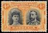 4d blue-black and non-aniline orange, Long Gash plate, position 12. O.g. example with sepia tint to heads, which show greenish on the reverse. SG 138 variant