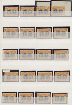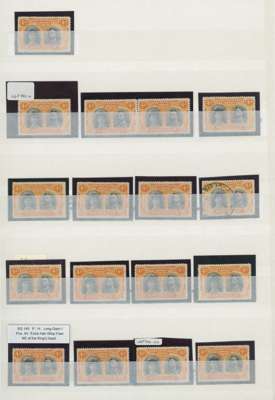 4d black and orange, positioned examples, 37 out of the 50. (The missing positions are 4, 9, 18, 21, 25, 32-3, 35, 37, 39, 42-3 and 46.) Nearly all are large part o.g. and fine - the exceptions noted are positions 2 (extensive mounting), 15 (used) and 34 (unused). Quite an achievement, and a challenge for another to take up! SG 140