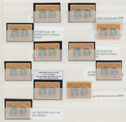 4d blue-black and orange, Hook plate, positioned group of eleven; 6, 8, 10, 14, 15, 20, 35, 38 (2), 43 (wrinkle) and 49. All o.g., mostly good. RSC B