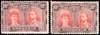 10d bright scarlet and maroon and 10d scarlet and maroon, both Long Gash plate, o.g. The former with a small flaw on the Queen's ear, part o.g.; the latter unmounted with minor wrinkles. SG 149, RSC A
