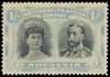 1/- black and pale turquoise-blue, No Gash plate. Two examples with the printer's mark between positions 12 and 13, at right and left respectively, large part o.g. RSC F2