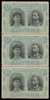 1/- black and (bright) turquoise-blue perf 15, No Gash plate, vertical o.g. strip of three from positions 3, 8 and 13. Upper stamp creased, nonetheless a rare and attractive multiple. RSC H