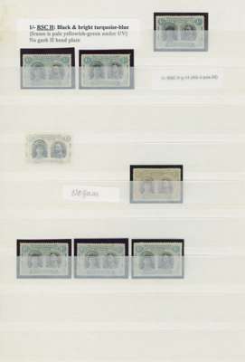 1/- balance group of 28, all mint save one without gum and one used (the latter perf 15). Mostly grouped by printings with a few plated. One poor, otherwise good to fine, a useful range