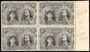 1910-13 2d black-purple and slate-grey right marginal block of four, perf 14, 'long gash' head plate, pos. 24-30. A fine, large part o.g. multiple, lightly hinged. BPA cert (1957). SG 127