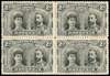 1910-13 2d black and grey-black block of four, perf 14, 'long gash' head plate, pos. 28-34, unmounted o.g. Faint bends, only mentioned for the sake of accuracy, a fine multiple. SG 130