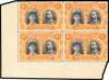 SG 140 variant ii 4d (deep) brownish black and orange corner block; #46 King's extra curl mint