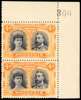 1910-13 4d purple-agate and orange, perf 14 corner pair with sheet number, 'long gash' head plate. The stamps very fine unmounted o.g., showing distinctly purplish heads; a very scarce multiple of a scarce printing. SG 140 variant iv