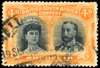 RSC F 3d blue-black and yellowish orange, #30 with doubled vignette, used