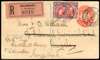 1912 (2 MAR) 1d red p/s envelope, registered from Salisbury to England and uprated with 1910-13 10d scarlet and reddish mauve (SG 149), tied by ‘SALISBURY / RHODESIA’ cds (Proud type D8) with registration label at upper left, re-addressed on arrival and backstamped at London (23 MR), Rugeley (MR 24) and Atherstone (MR 26). A very rare commercial usage