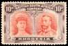 1910-13 10d vermilion and maroon, perf 14, 'thick ear' head plate, pos. 15. Very fine large part o.g., a rare stamp with around five examples recorded. SG 150a, RSC E